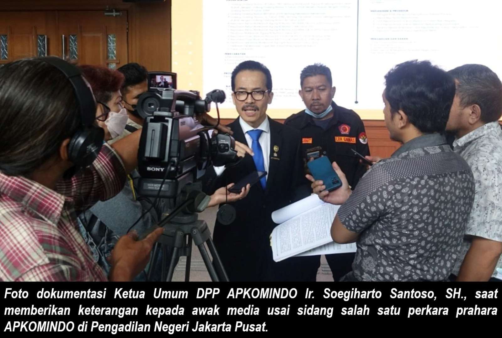 Hoky merinci bahwa gugatan perkara Nomor 479/PDT.G/2013/PN.JKT.TIM di Pengadilan Negeri Jakarta Timur diajukan pada tanggal 23 Desember 2013 oleh kelompok Pendiri yang mengaku sebagai DPA APKOMINDO atas nama Agus Setiawan Lie dan Rusdiah BE, MBA, MA.