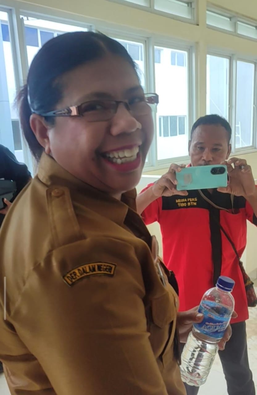 Sekretaris Dinas Kesehatan Kabupaten SBD, drg Margaretha H. Selan tidak menghindari pertanyaan wartawan. ( Foto Menara Sumba )