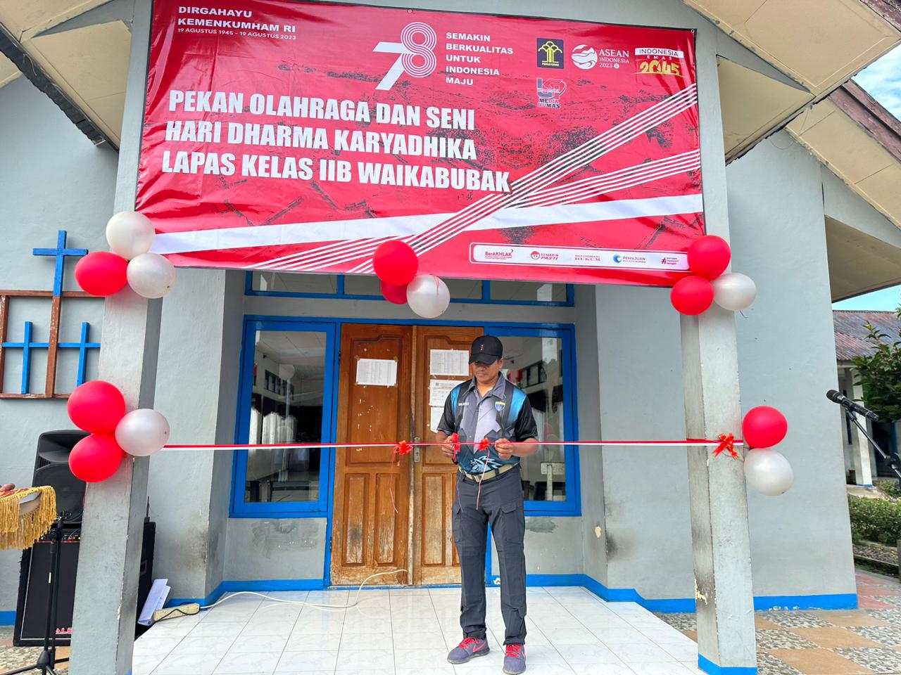 Pembukaan secara resmi kegiatan ini ditandai dengan dengan pengguntingan pita oleh Kepala Lapas Waikabubak. ( HUMASLP/TIM/MS )