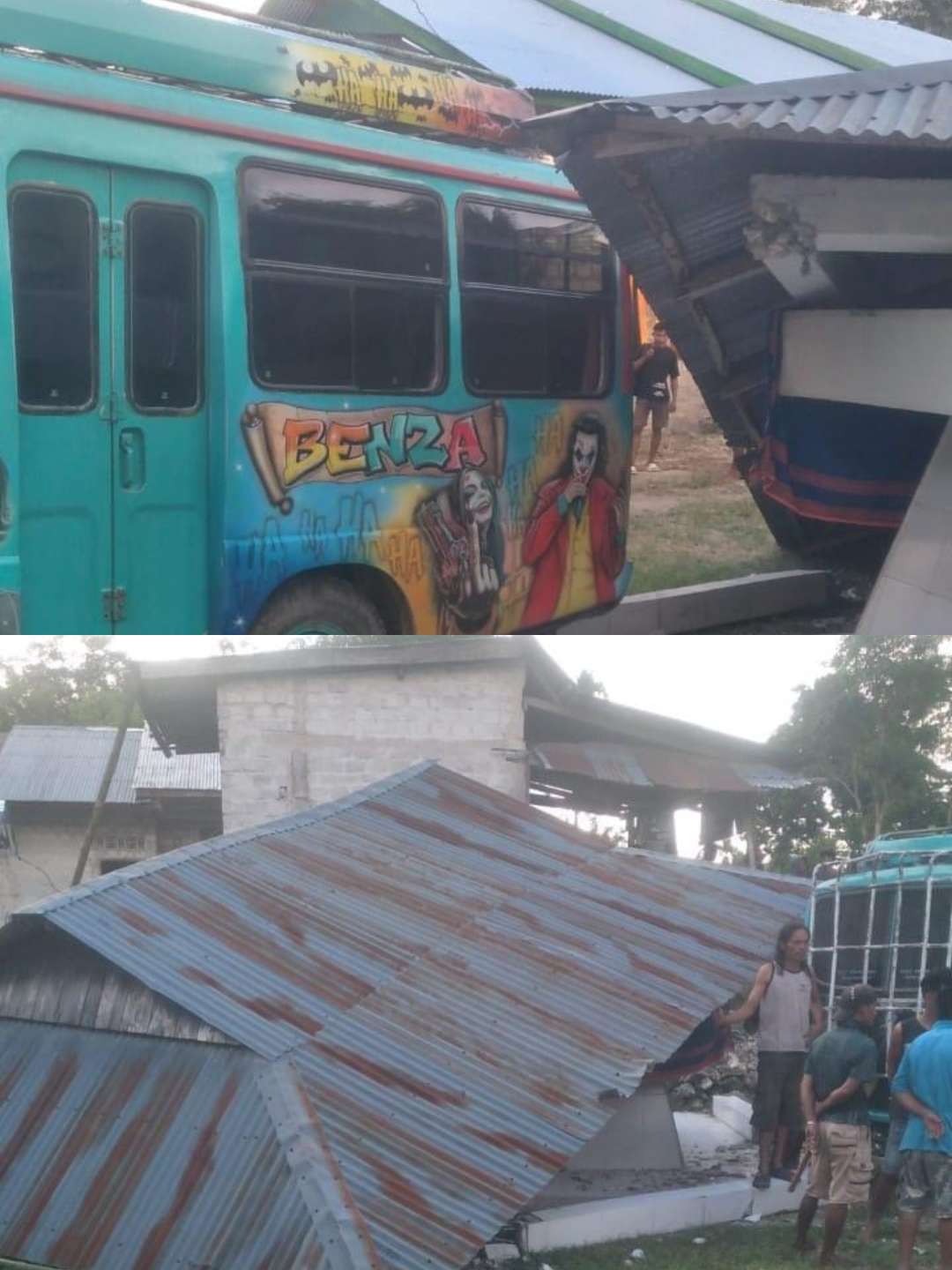 WEWEWA SELATAN, MENARASUMBA.COM – Sebuah bus yang diduga dikemudikan sopir yang sedang “on” (mabuk) menabrak rumah kubur di Tena Teke, Wewewa Selatan, SBD.