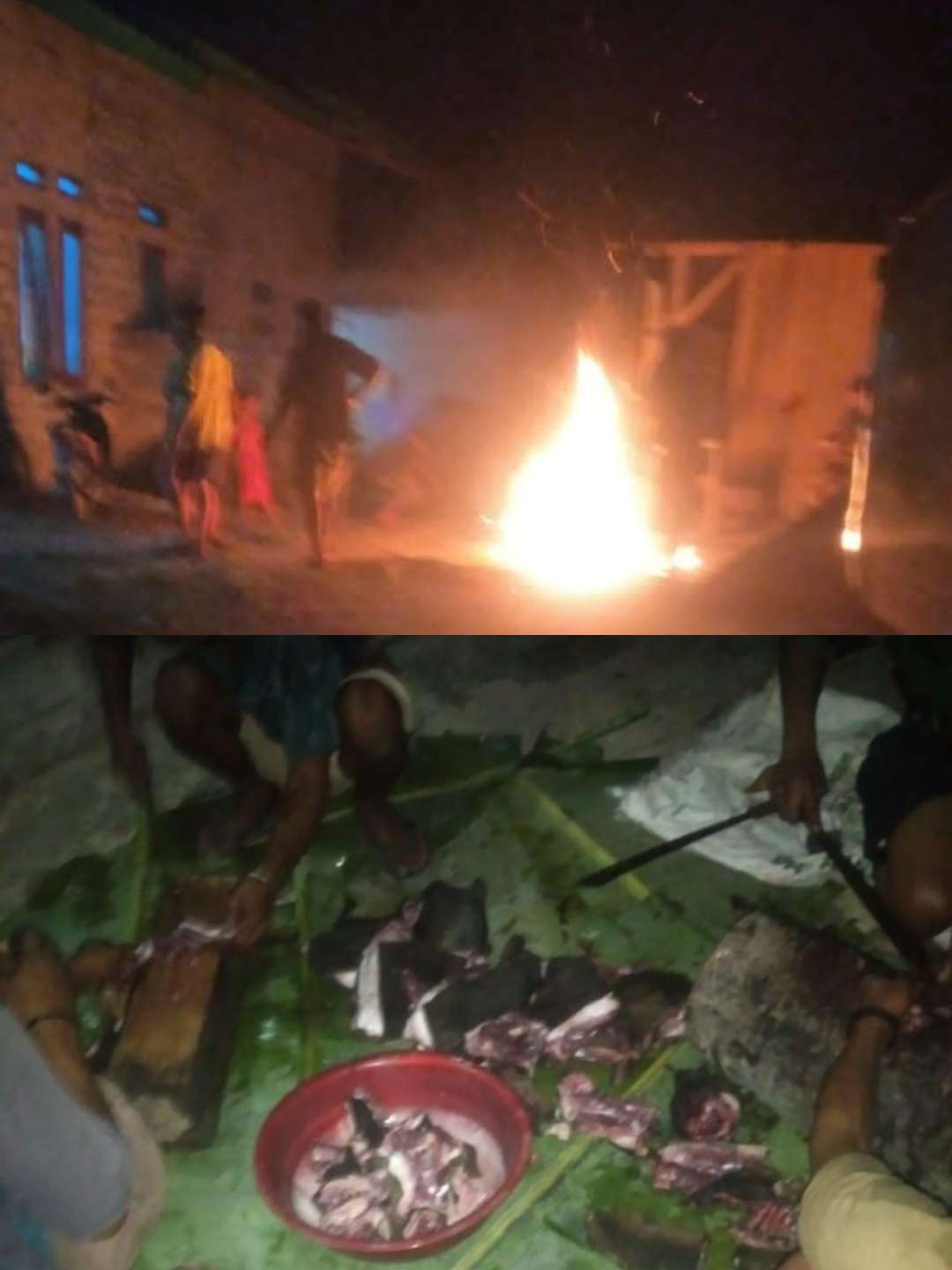 Sesuai tradisi budaya setempat, Yusuf dan keluarganya melakukan ritual adat yang ditandai dengan penyembelihan seekor babi.