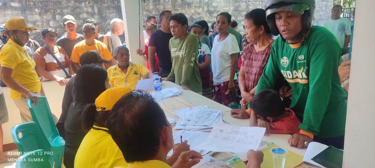 Warga berbondong-bondong mendatangi Sekretariat DPD II Partai Golkar Kabupaten SBD yang dijadikan area kegiatan pasar murah.