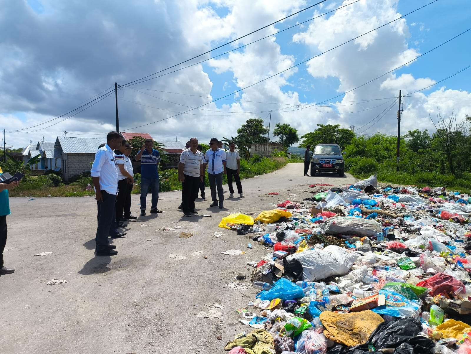Rombongan kemudian meneruskan perjalanan menuju TPA di Desa Rama Dana dengan melintas jalan melewati kompleks perumahan BTN di Desa Pogo Tena.